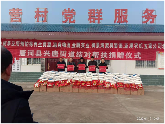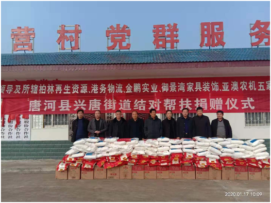 捐贈儀式上產業(yè)集聚區(qū)黨委書記劉清文、主任李國營代表興唐街道黨委、政府向五家企業(yè)的義舉表示感謝。他指出,以亞澳農機為首的這五家公司,在完成自身企業(yè)負責包片貧困村脫貧的基礎上,還能再拿出現金3000元捐資扶貧,將自己的社會責任意識,由助力脫貧攻堅,走向現在回饋社會。代表著我縣企業(yè)經營由起步走向成熟。他希望廣大困難群眾正確面對暫時的困難,樹立戰(zhàn)勝貧困、走出困境的信心和勇氣,發(fā)揚自力更生、艱苦奮斗的精神,不等不靠,在黨委、政府和社會各界的支持和幫助下,以自身的努力和實干來化解生產、生活中的各種困難,為構建美麗和諧的新唐河作出自己的貢獻。