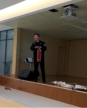 活動分兩部分進行:第一部分有王教官針對防火安全知識,結(jié)合案例介紹,培訓(xùn)大家對日常工作安全的應(yīng)急預(yù)案、隱患防護方法及應(yīng)對措施;第二部分通過現(xiàn)場防火安全演練,教育大家正確使用防火器材,同時對日常的安全隱患檢查、排除指導(dǎo)。