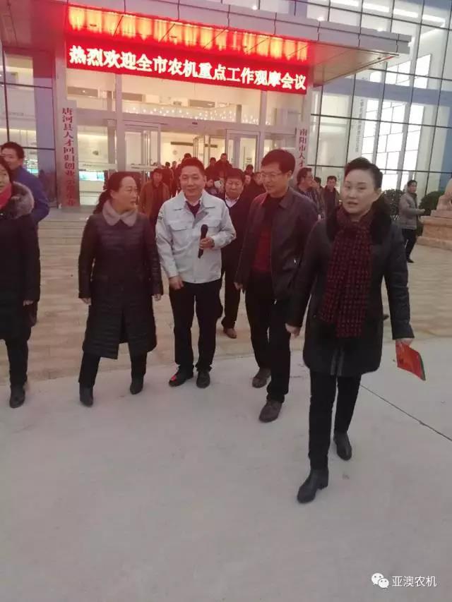2017年12月13日,南陽市農(nóng)機(jī)局劉勤局長在縣政府馬俊宏副縣長、縣農(nóng)機(jī)局張凌局長陪同下帶領(lǐng)參加全市農(nóng)機(jī)重點(diǎn)工作的市、各縣農(nóng)機(jī)系統(tǒng)領(lǐng)導(dǎo)及各縣屬專業(yè)農(nóng)機(jī)合作社人員,來到亞澳農(nóng)機(jī)觀摩指導(dǎo)。
